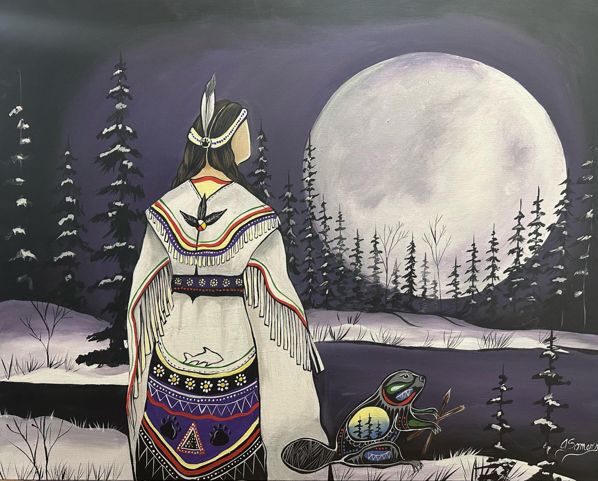 November Moon is a serene 10×12″ Woodland-style art print by Jessica Somers. Capturing the quiet transition into winter, this piece serves as a visual meditation on letting go, inviting you to release what no longer serves you and embrace the restorative power of stillness.